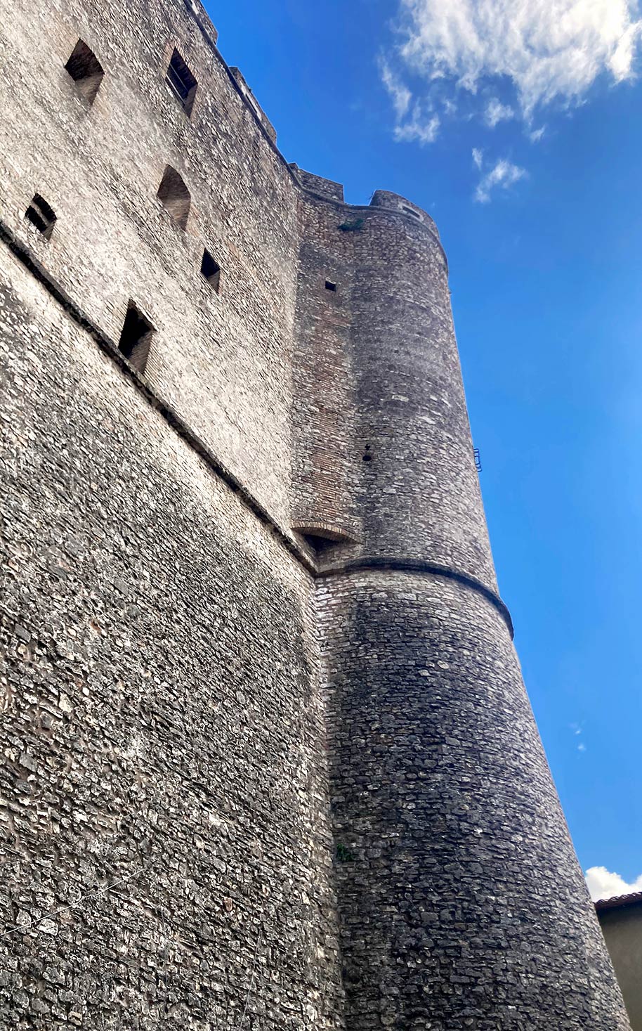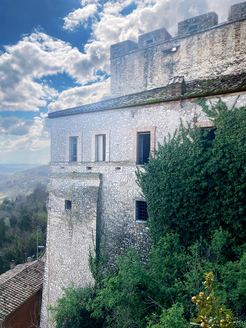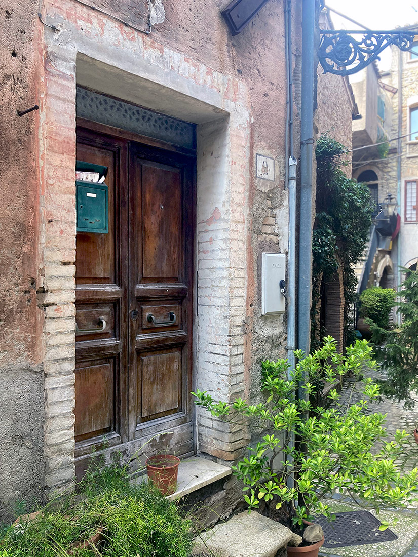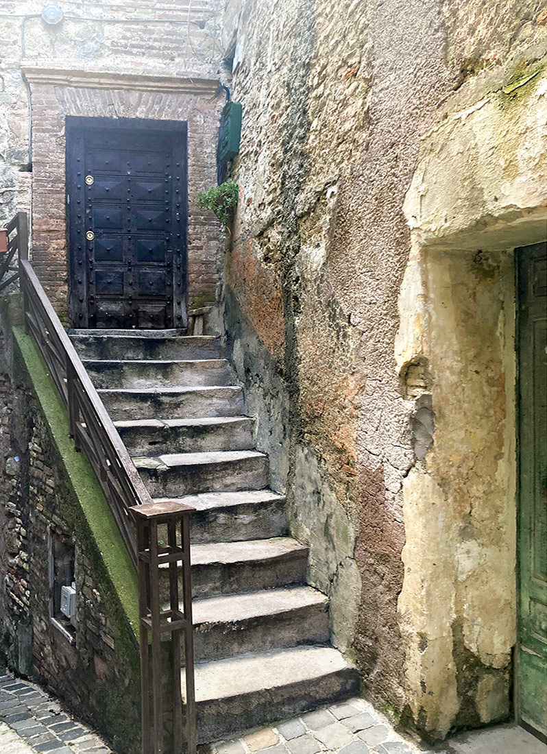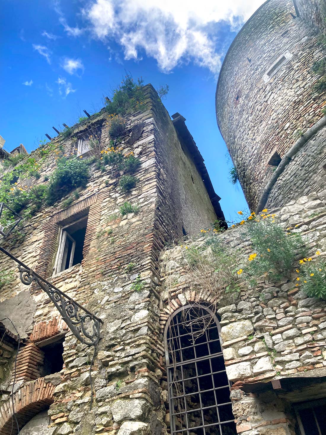 Una volta consegnata l’opera abbiamo pensato di fare un giro nel paese, che pareva magnifico nella sua tranquillità. A quell’ora era del tutto deserto, e molte case che abbiamo visto erano disabitate e abbandonate a se stesse. Arrivati in cima al paese, da dove si vedeva il Tevere in tutta la sua bellezza, ci siamo addirittura affacciati in un appartamento quasi pericolante; le stanze erano collegate da piccole rampe di scale ed erano costruite a diverse altezze.