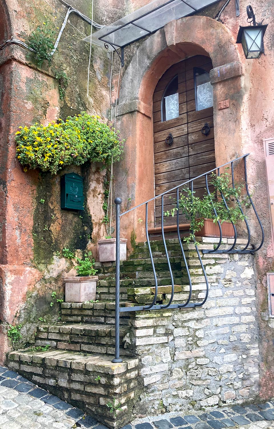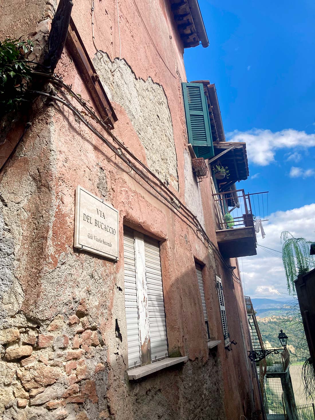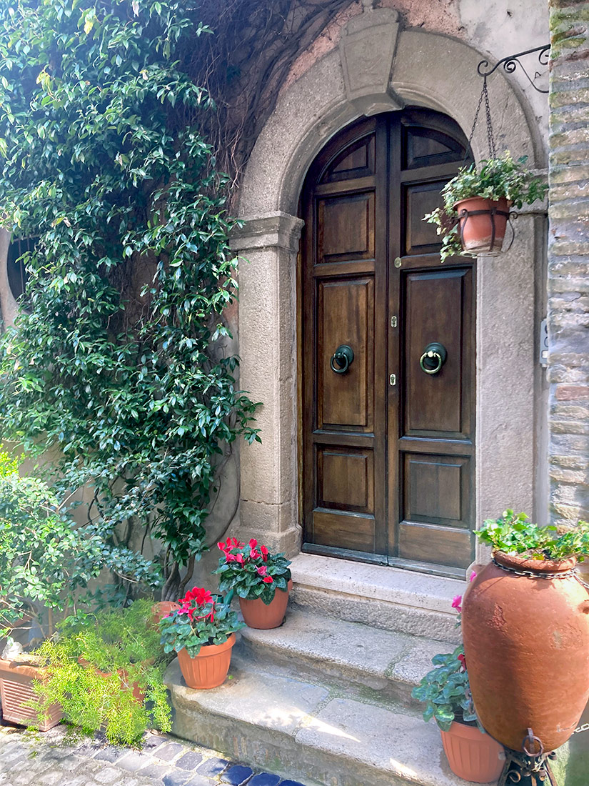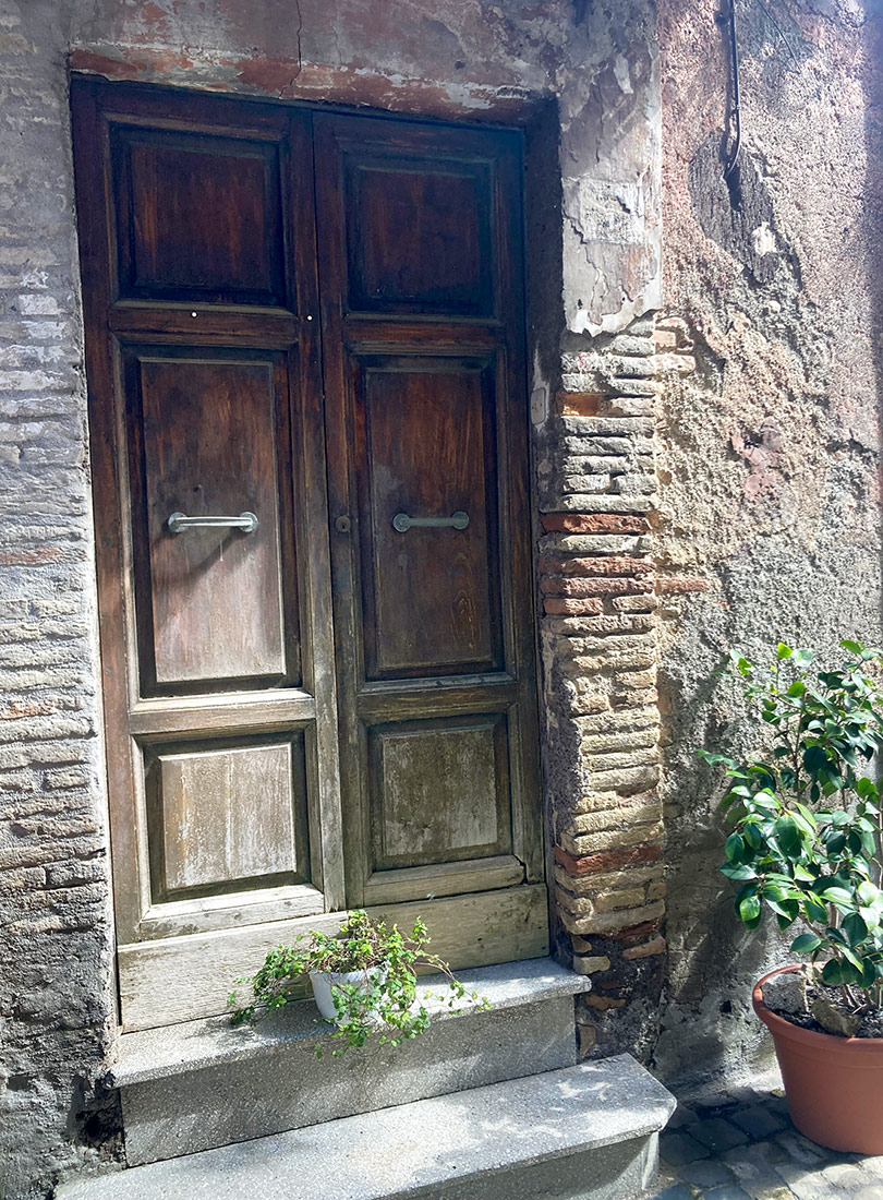 Una volta consegnata l’opera abbiamo pensato di fare un giro nel paese, che pareva magnifico nella sua tranquillità. A quell’ora era del tutto deserto, e molte case che abbiamo visto erano disabitate e abbandonate a se stesse. Arrivati in cima al paese, da dove si vedeva il Tevere in tutta la sua bellezza, ci siamo addirittura affacciati in un appartamento quasi pericolante; le stanze erano collegate da piccole rampe di scale ed erano costruite a diverse altezze.