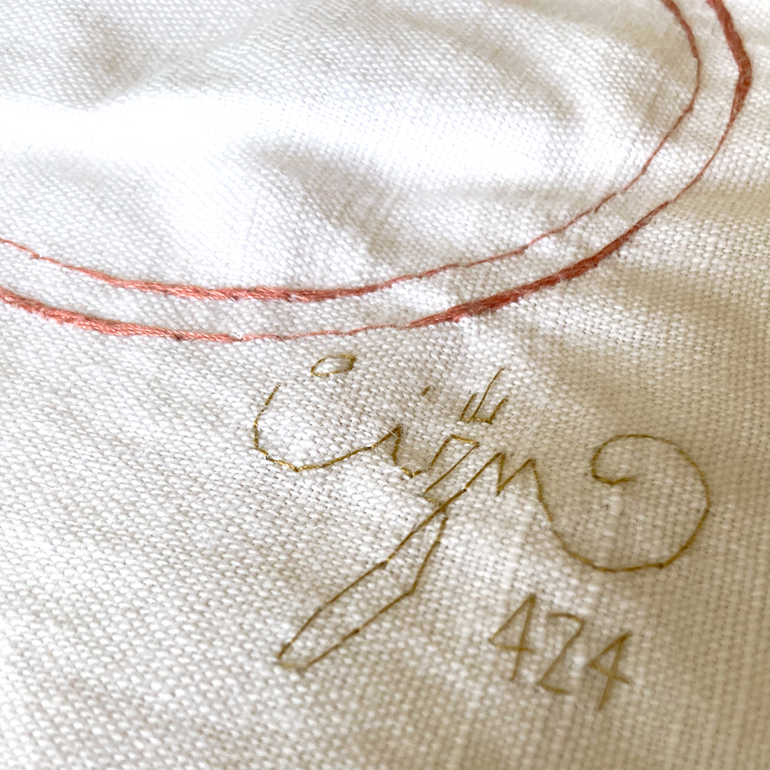 Federa realizzata nell’aprile 2024, ricavata da un lenzuolo in lino antico proveniente da un corredo familiare reatino (misura 48×52 cm circa).
